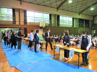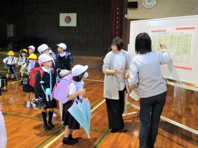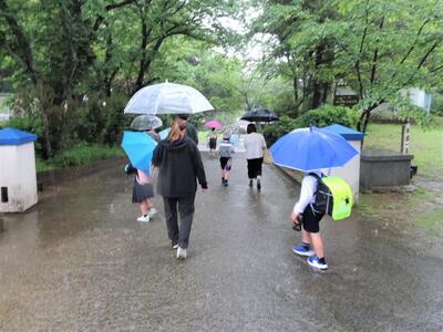 先週の金曜日(9日)、緊急時における児童引き渡し訓練を実施しました。大雨や台風、雷等の自然現象や不審者等の影響で徒歩による下校が難しい場合を想定し、例年この時期に実施しています。当日は、午後から強い雨が降っており、本番さながらの訓練となりました。訓練にご参加いただきありがとうございました。