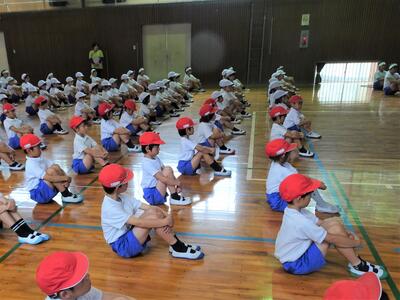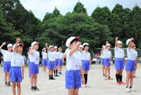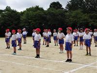 今日は2時間使っての予行練習。開会から閉会までプログラムを絞って行いました。予行練習は、出発係や決勝係など、係の動きを子どもたちが確認していく場でもあります。少し蒸し暑い中でしたが、最後まで元気にやり抜きました。本番も、子どもたちの一生懸命な姿を期待しています。
