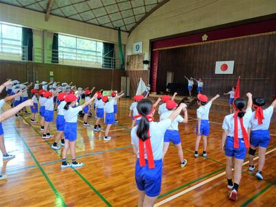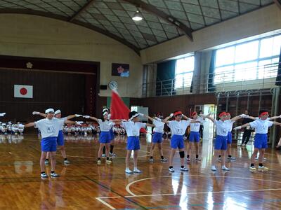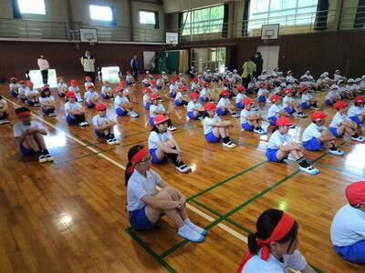 運営委員長を中心に進む全体練習の③回目、昨日は体育館で開閉式の練習と応援練習を行いました。代表児童や先生の話を背筋を伸ばして聞く姿勢、応援練習でのかけ声や歌も声が出るようになってきました。運動会まで残り1週。6年生を中心に、それぞれのゴールを目指して頑張りましょう。