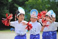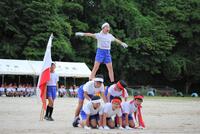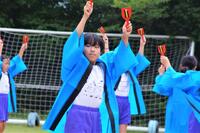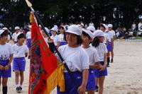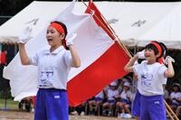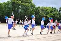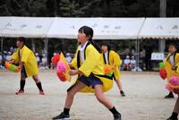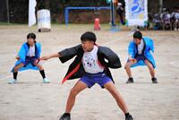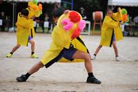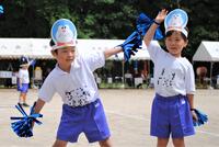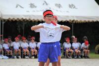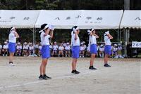 1・2年生は「ドドド・ドラえもん」、3・4年生は「花笠音頭」と「玉名音頭」、、そして5・6年生は「よさこいソーラン」。運動場いっぱいに躍動する子どもたちの姿が見られました。八嘉応援団は6年生全員で工夫を凝らしました。