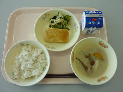 子どもたちに人気の豚汁に、今日はキムチが入っていました。辛くはなく、おいしくいただきました。さといもコロッケは、ふんわり柔らかく仕上げてありました。シャキシャキとした食感が特徴の茎わかめは、食物繊維が豊富で、カルシウムやマグネシウム、ビタミンKなどさまざまな栄養素を含んだ栄養満点な優秀海藻です。