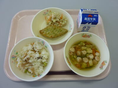 今日はすしの日でした。甘酸っぱい味は子どもたちにも人気です。旬を迎えたカリフラワーもサラダになって登場しました。ブロッコリーと同じくキャベツや白菜、チンゲンサイなどの仲間で、ゆでた後にビタミンCの損失率が低いことから、注目されている野菜のひとつです。