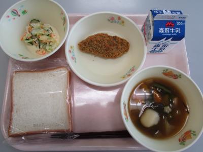 「夏野菜のだんごスープ」「あじハーブフライ」「コールスローサラダ」「食パン」でした。