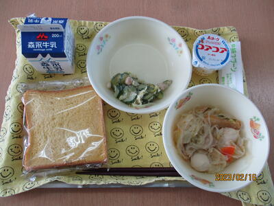今日のメニューは、麦ごはん、牛乳、ワンタンスープ、豚肉の甘辛炒め、たくあんあえです。豚肉は、たんぱく質やビタミンB群、ミネラルが豊富で、健康にうれしい食材です。特にビタミンB1は糖質の代謝を助け、疲労回復にも役立ちます。今日は、たっぷりの豚肉を使った甘辛炒めを美味しく味わいながら、元気をチャージしましょう。