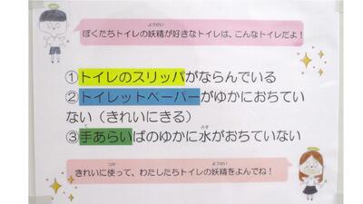 トイレをきれいに使って、「トイレの妖精」をたくさん出現させましょう!!