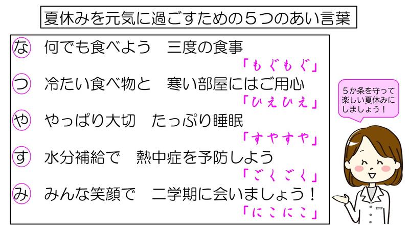 そんな夏休みを楽しく過ごすための5か条をここで紹介しておきます。