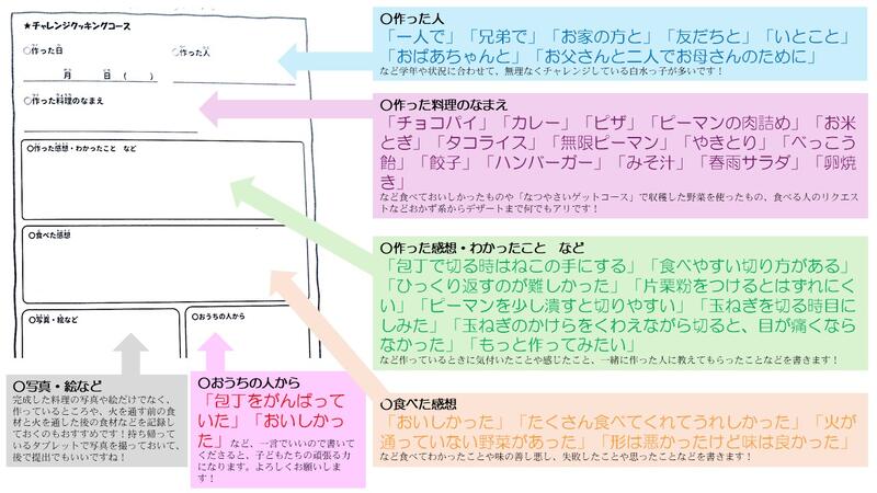 また、夏休みに「チャレンジクッキング♪(ふれあいcook)」に取り組んでみてはいかがですか?