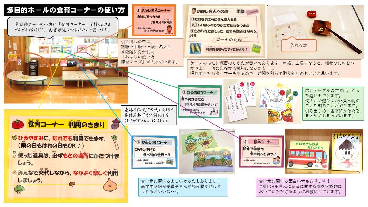 白水小の多目的ホールに「食育コーナー」ができました