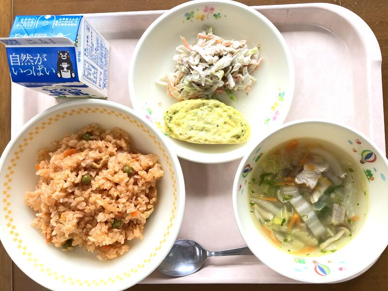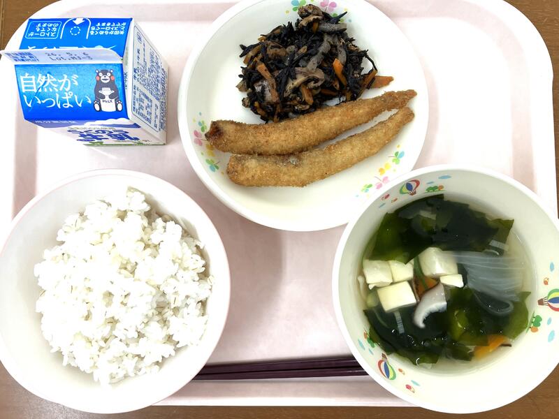今年度最後の給食です。1年間の給食はおいしかったですか?楽しかったですか?みなさんからの「おいしかった」「苦手だったけど食べられた!」などの声がうれしかったです。また、今年は南阿蘇村でとれる食べものをた~くさん使いました。どんなものがとれるか、おぼえてくれましたか?南阿蘇にはおいしいものがた~くさんあります。最後も宮田さんちのおあしす米で締めくくります!食べることは、生きること。食べものの命をいただいて、自分の命につなげているのです。食べものや生産者、調理員さんなど、給食の向こう側を想像できる人になってほしいです。1年間食べてくれてありがとうございました。