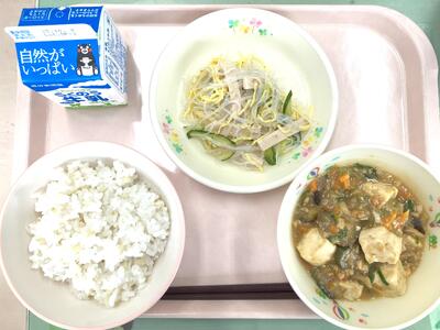 バンサンスーですが、春雨のつるつる食感が残るように、調理員さんがひと手間をかけて作ってくださいました。そのおかげで「サラダがおいしかった」「春雨がおいしくていっぱい食べたよ」といううれしい声が聞かれました♪