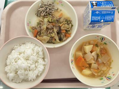 クイズです。ちゃんぽんは、どこの県の料理でしょう?ヒントは6年生が修学旅行で行くところです。わかりましたか?答えは長崎県です。明治時代、長崎の中華料理店の店主が、中国人留学生に栄養があっておなかいっぱいになる料理を食べさせたくて作ったのがちゃんぽんのはじまりです。ちゃんぽんという名前の由来は、簡単な料理という意味の中国語「シャンポン」がなまったとか、ポルトガル語の混ぜるという意味の言葉がなまってできた、などいろいろな説があるようです。給食のちゃんぽんも、お肉、魚介類、たっぷり野菜と栄養がたっぷりですよ。あさり貝も食べてくださいね。