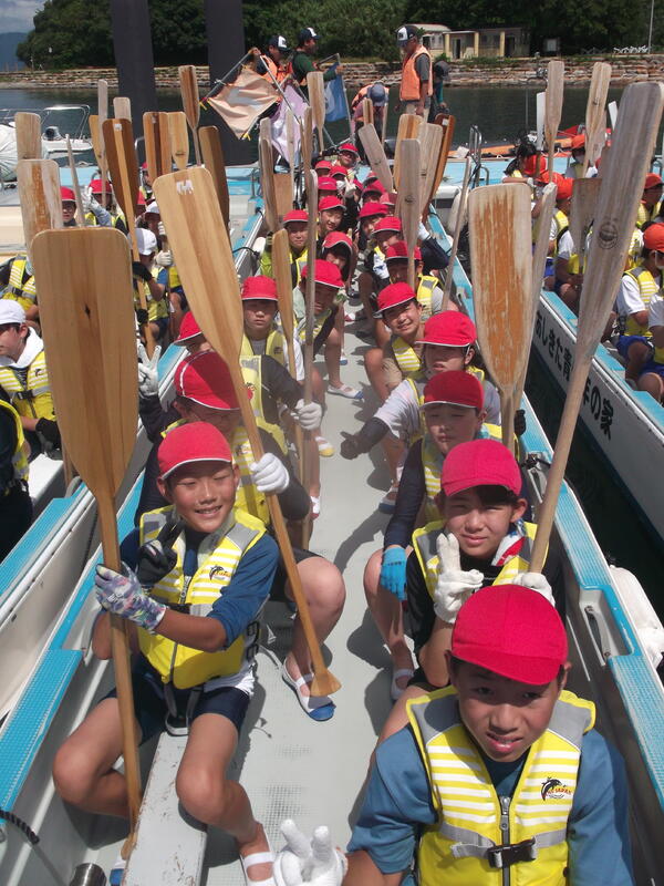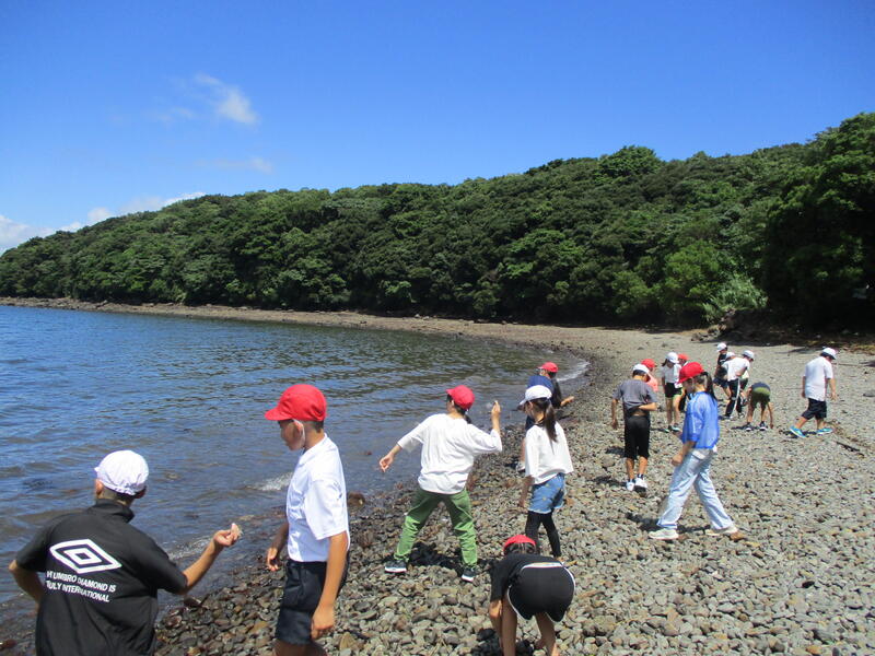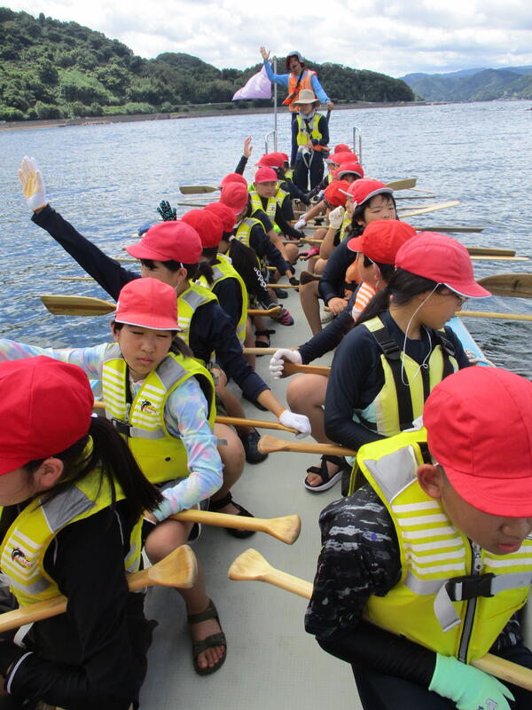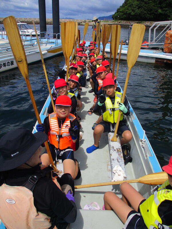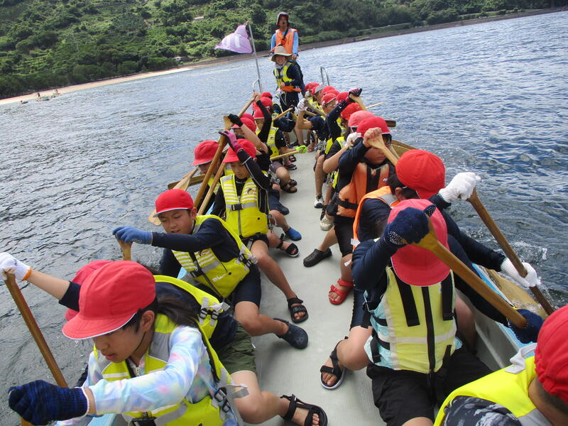 楽しみにしていたマリン活動です。午前中はペーロン競争、午後は海水浴です。心配された天候ですが、当日はとてもいい天気で、海を満喫できました。他校と、合わせて5艇でのペーロン競争では、見事!白水小学校が1位をとりました。気持ちをひとつにして頑張りました。楽しかったです!!