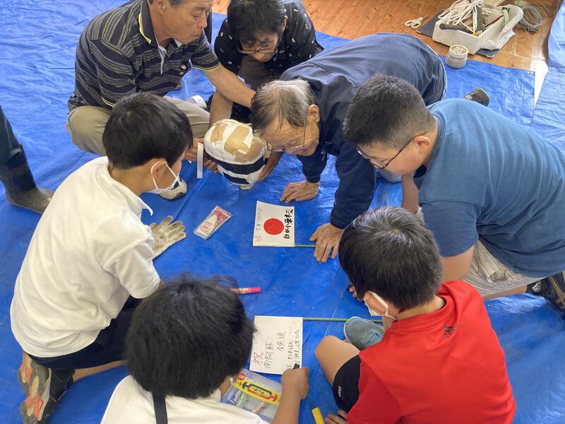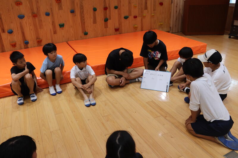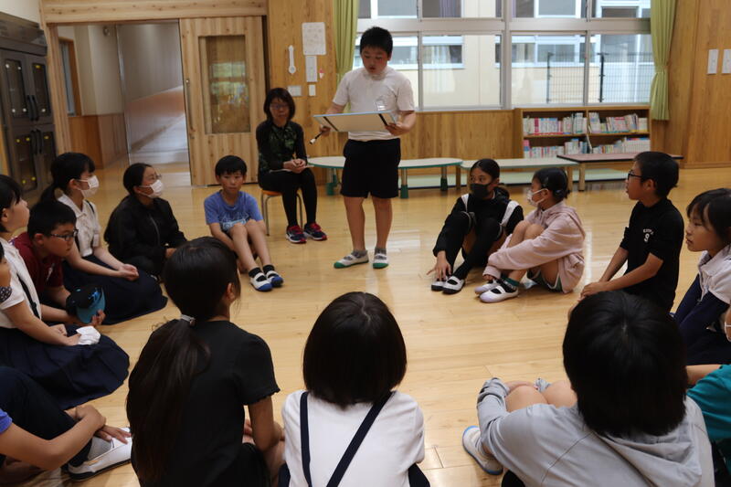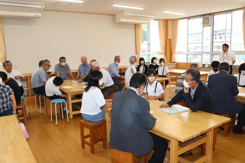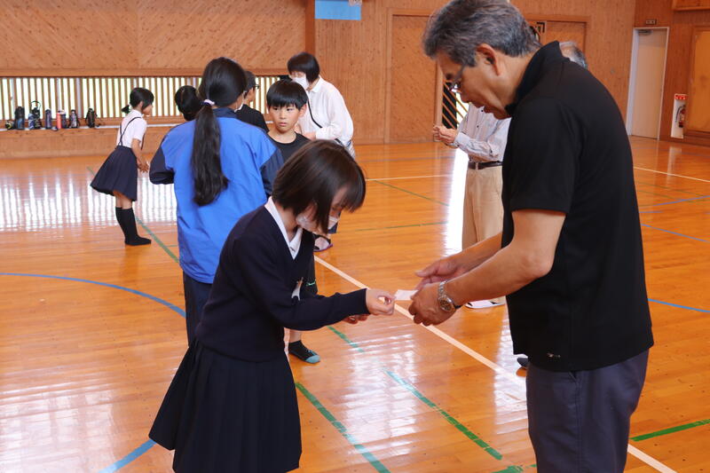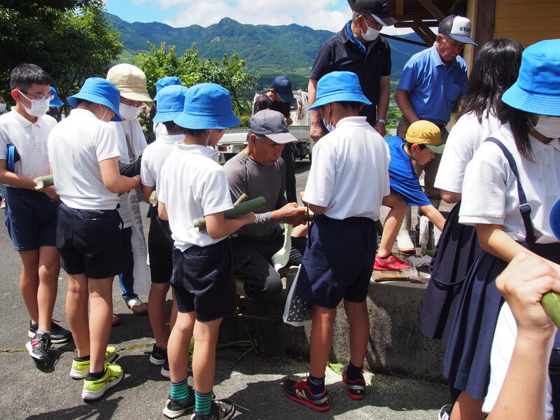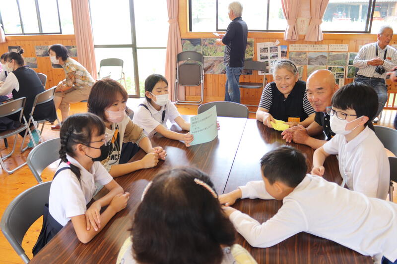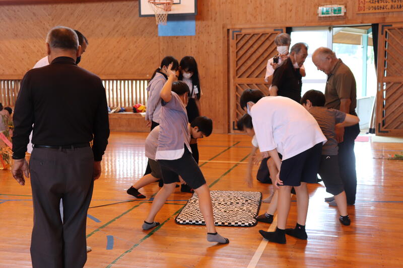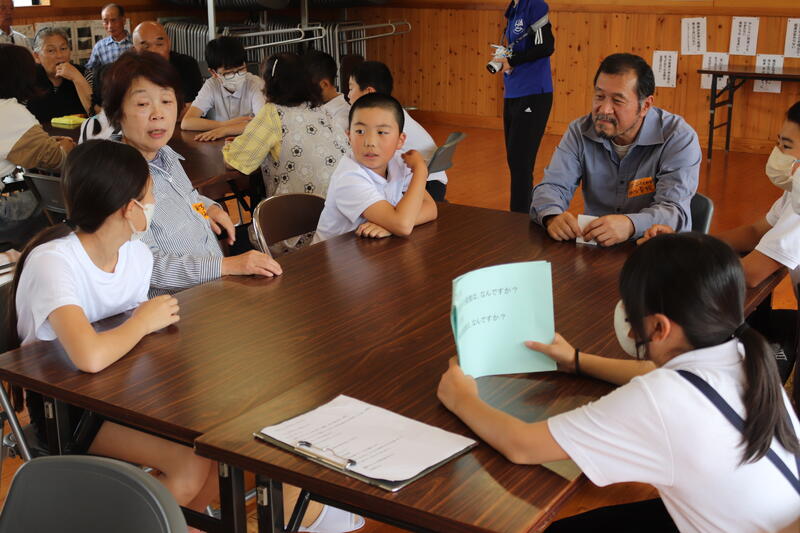 昨年度の2月の学校運営協議会で、本校児童(企画運営委員会)から、「地域の方々と交流する機会を作りたい」と提案がありました。学校運営協議会の委員さん方のご協力をいただき、校区内の各区長さん方との打合せ会を経て、7月11日、ついに第1回目の「地域との交流会」を実施することができました。今後は、「地域の特色を生かした活動」として、本校の伝統になるよう取り組んでいきたいと思います。