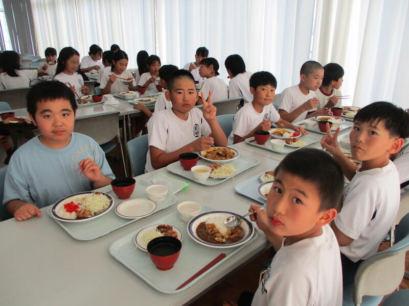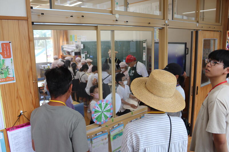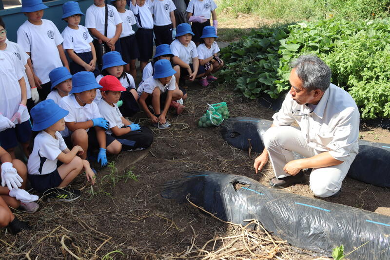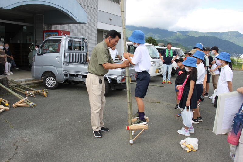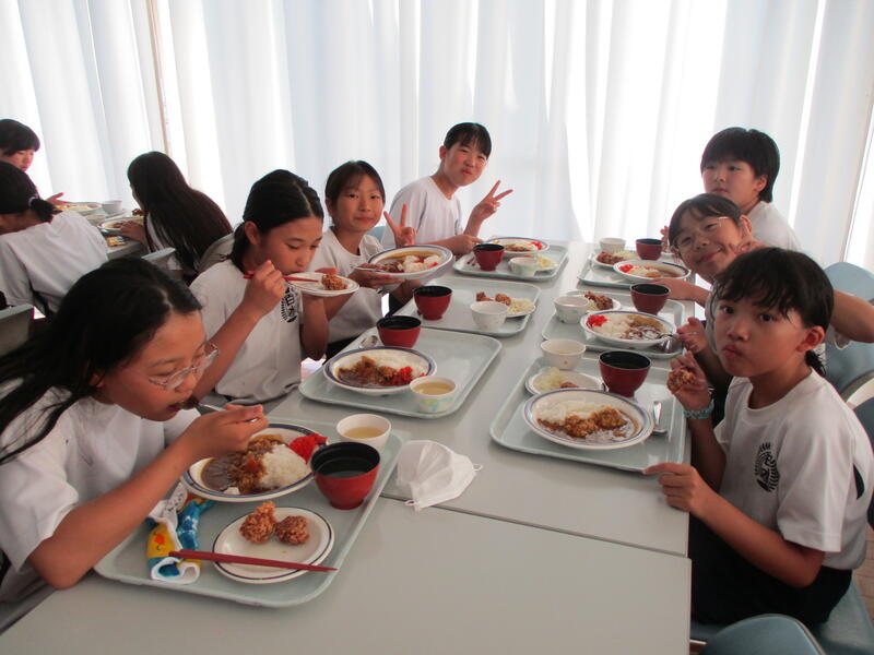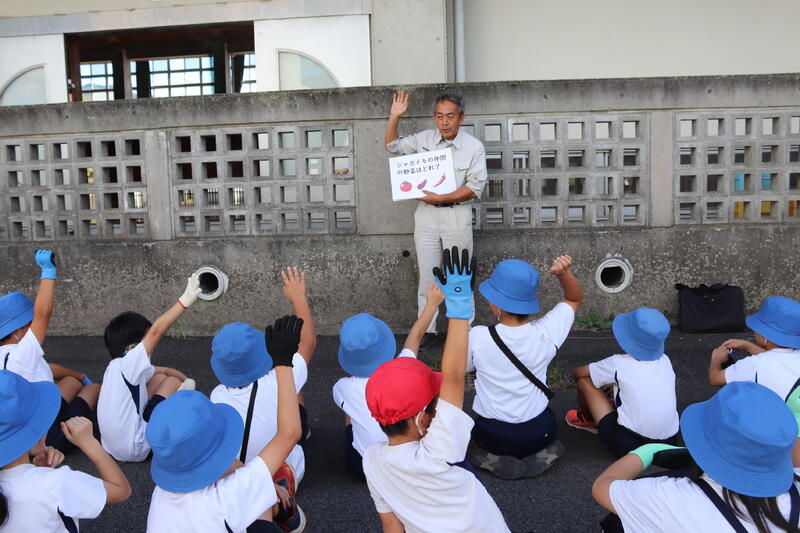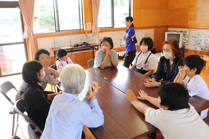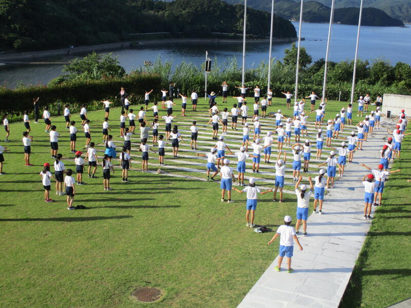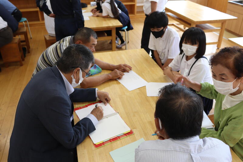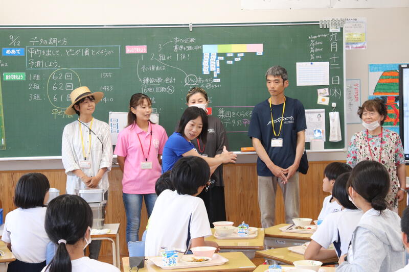 昨年度の2月の学校運営協議会で、本校児童(企画運営委員会)から、「地域の方々と交流する機会を作りたい」と提案がありました。学校運営協議会の委員さん方のご協力をいただき、校区内の各区長さん方との打合せ会を経て、7月11日、ついに第1回目の「地域との交流会」を実施することができました。今後は、「地域の特色を生かした活動」として、本校の伝統になるよう取り組んでいきたいと思います。