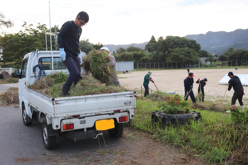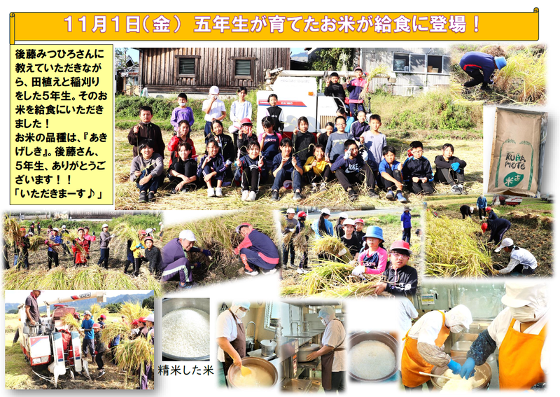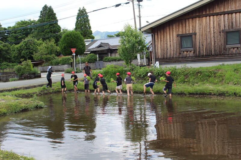 活動後は、保護者の方々が用意してくださった温泉で体を洗い、さっぱりして学校に帰りました。この後、この田んぼで田植え~稲刈りと活動は続いていきます。