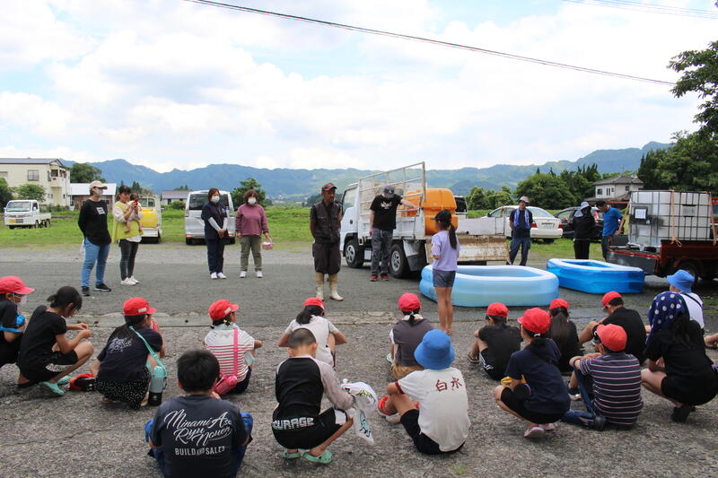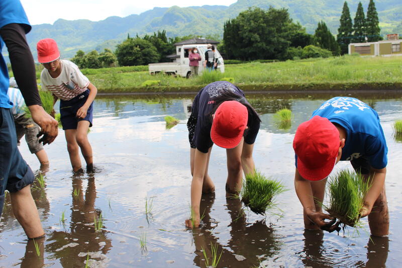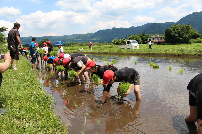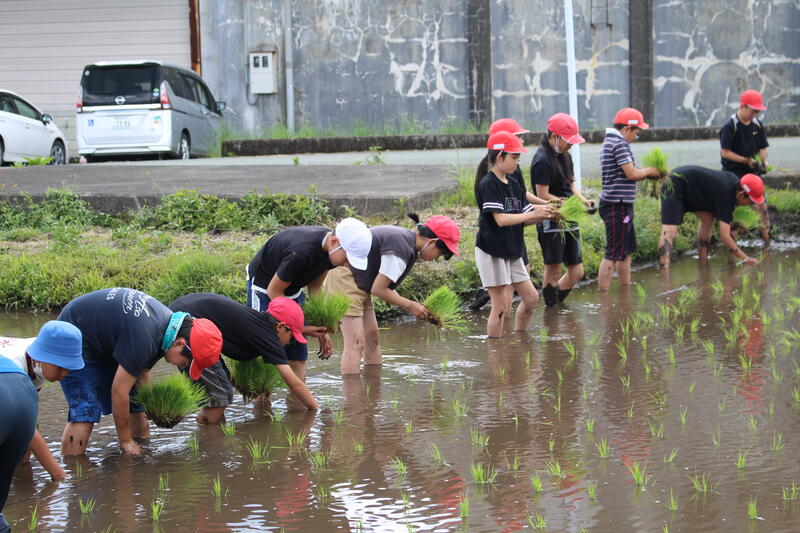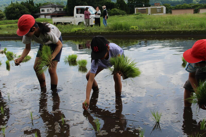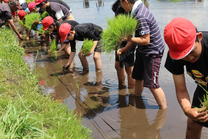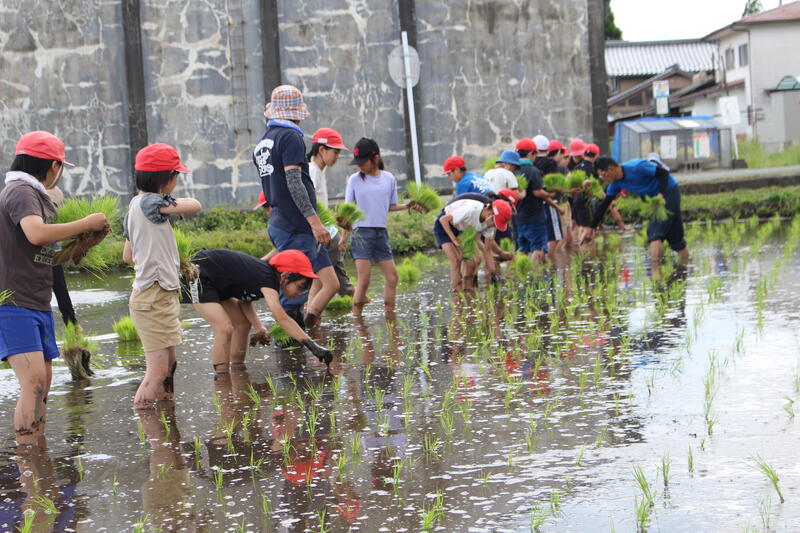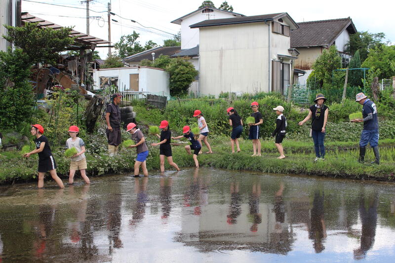 5月17日に泥リンピックで遊んだ場所の田んぼで、田植えを体験しました。地域の方所有の田んぼをお借りし、保護者の方にも手伝ってもらいながら、今年も貴重な体験ができました。