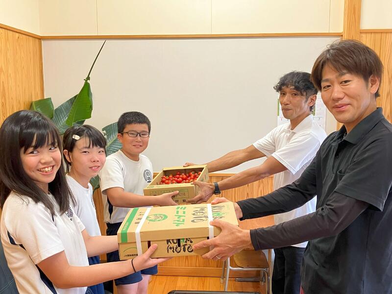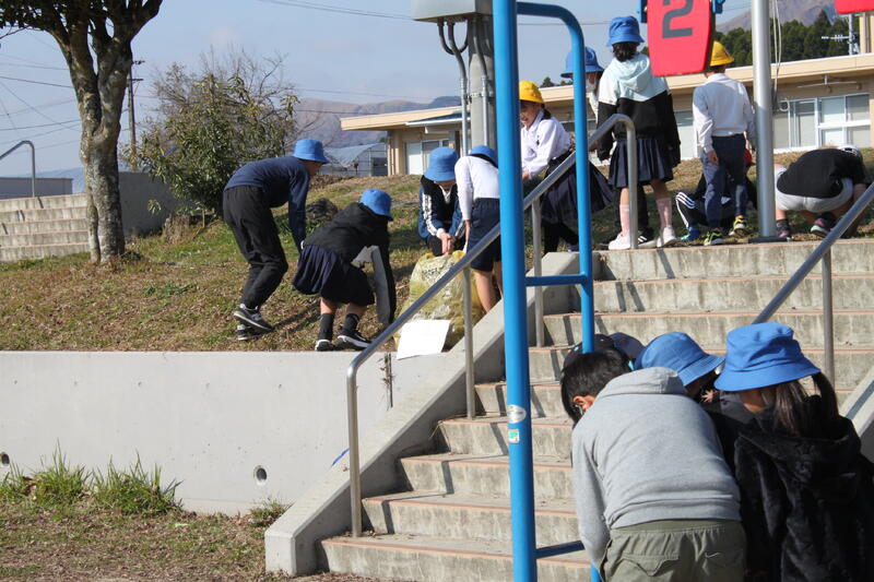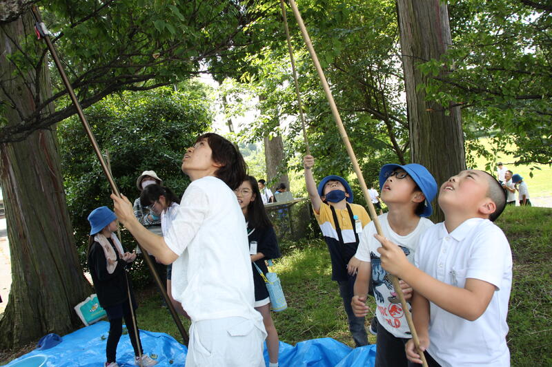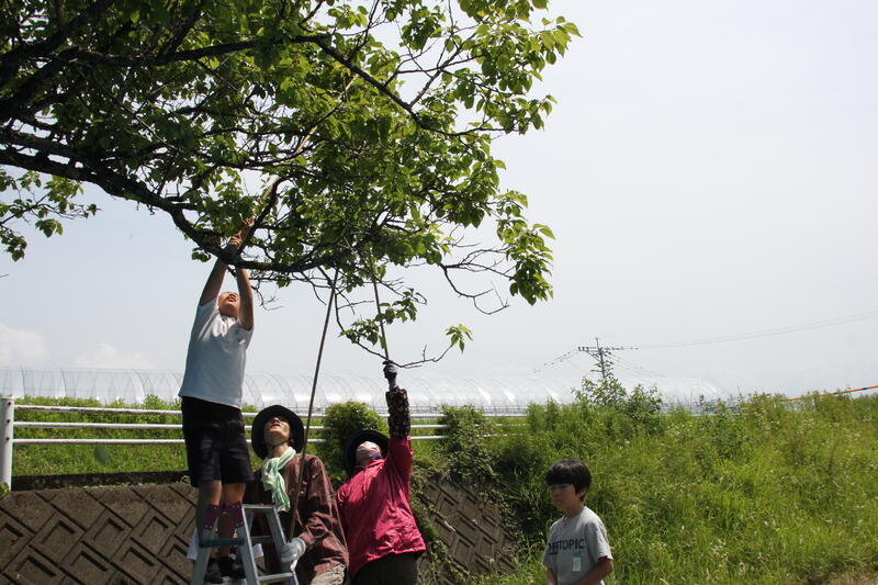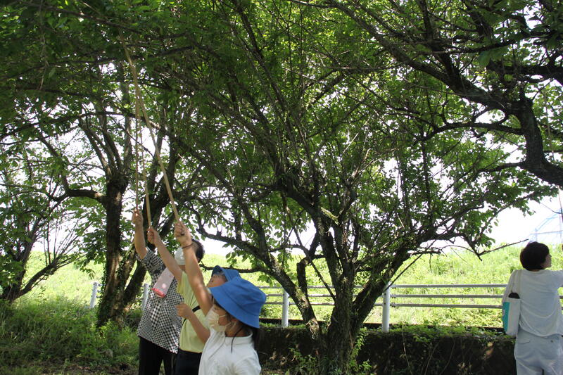 地域の婦人会の方や、多くの保護者の方々にも協力していただき、今年も4年生が梅ちぎりをしました。今年は、全国的にも梅が実っていないようで、白水小学校の梅の木も、収穫量が昨年よりだいぶ少なかったです。そのような状況もあり、当日は保護者の方に、別動隊として旧中松小の梅もちぎってきてもらいました。
