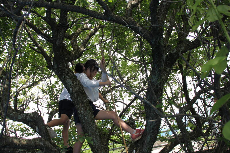 友達と手をつなぎ、体のどの部分が伸びているのかを感じながら楽しみました。