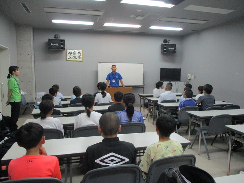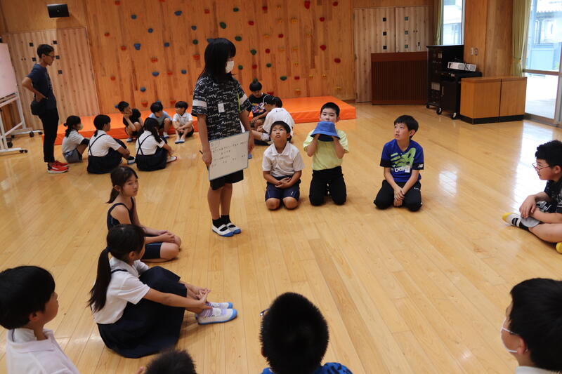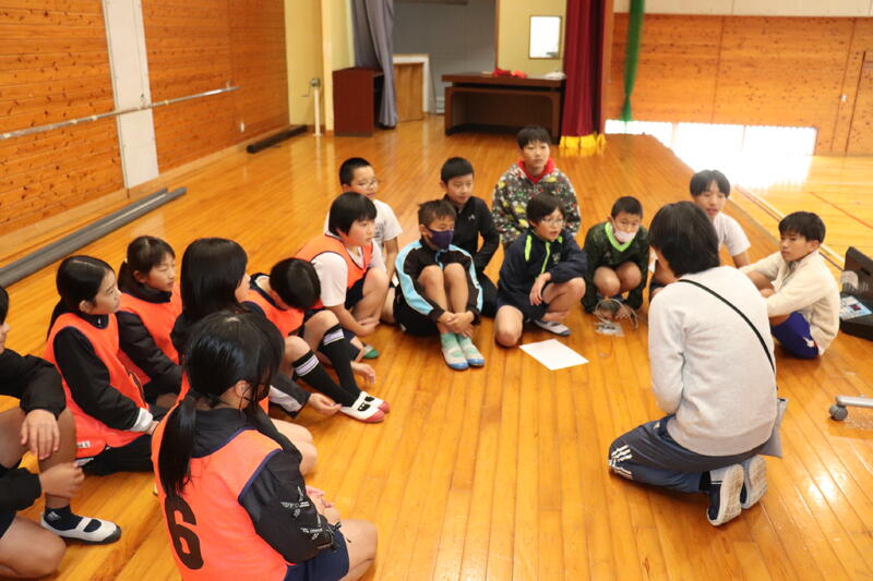 子供たちのいつもの準備運動を見た後に、ストレッチの時のポイントを楽しく教えていただきました。