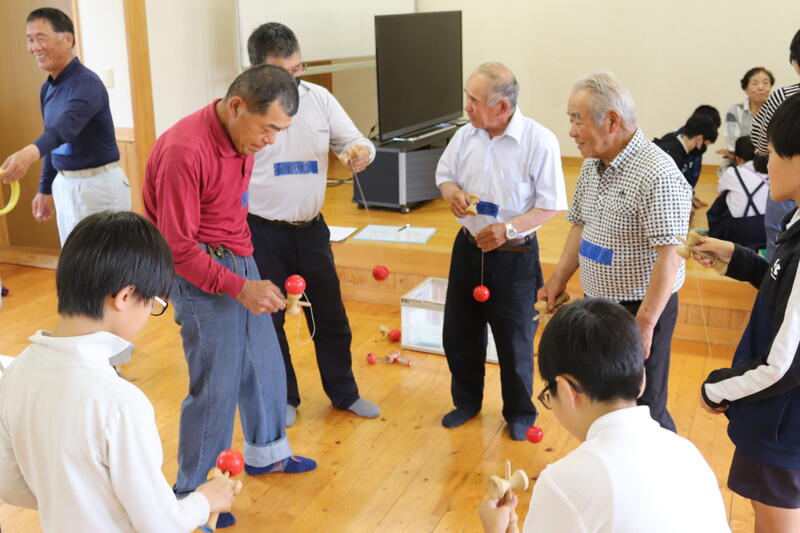 「地域との交流会」は元々児童の発案で、地域の方々とのふれあいを主な目的としています。今年は昔遊びをしながらいろんなお話をしたいと計画しました。昔遊びの内容は、けん玉・お手玉・あやとり・輪投げ・トランプ・百人一首などに決まりました。地域の方ともっと仲良くなる機会になるといいですね。