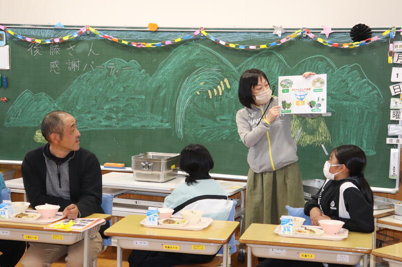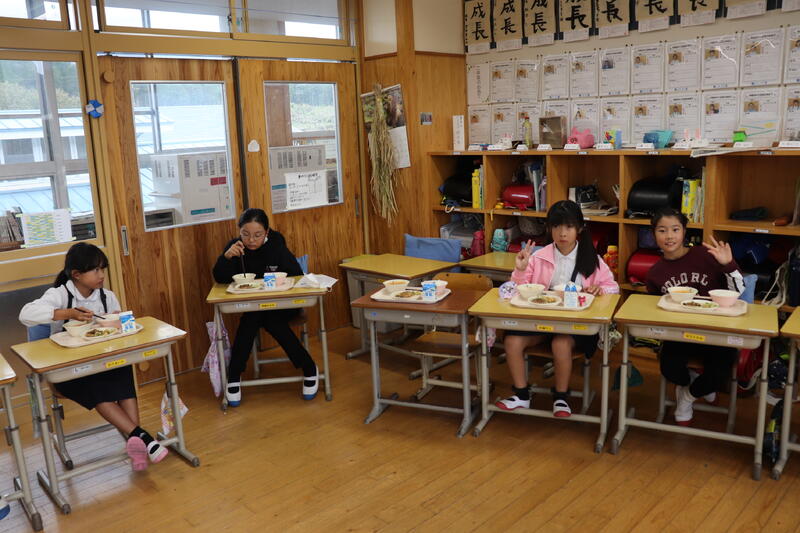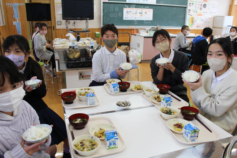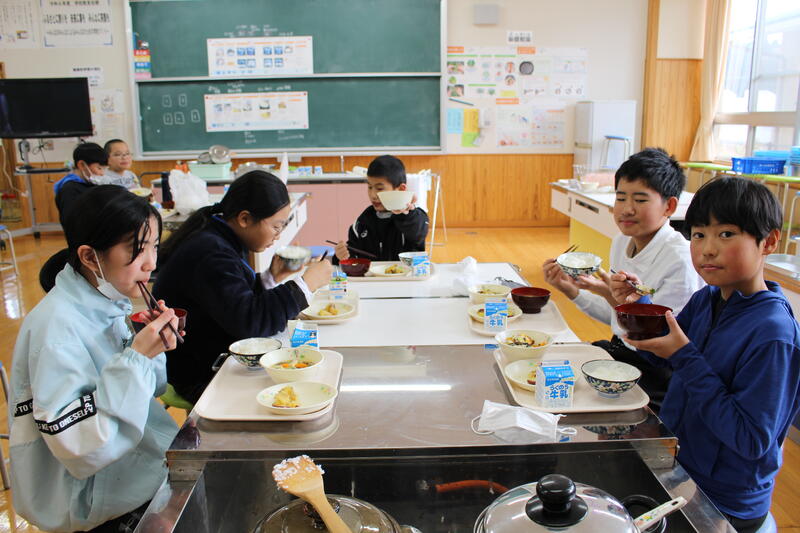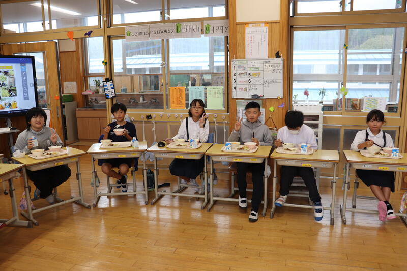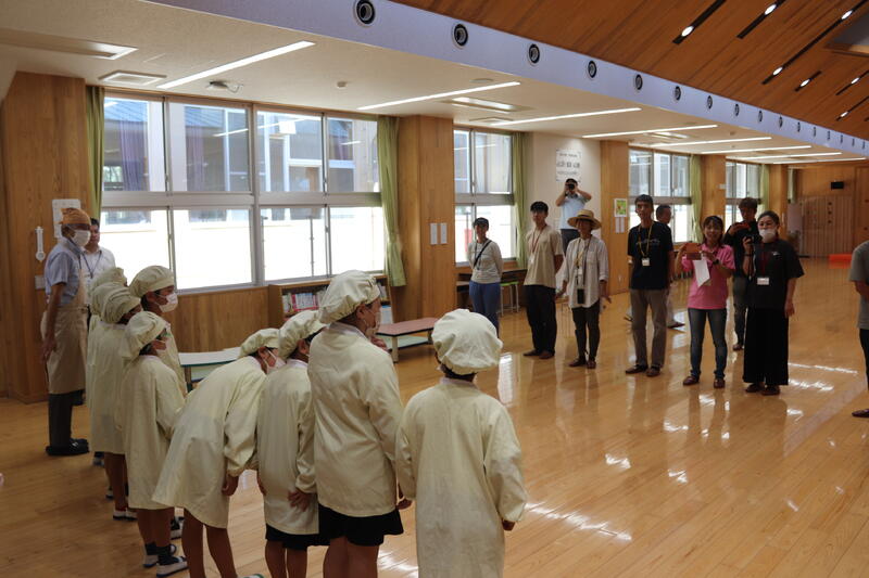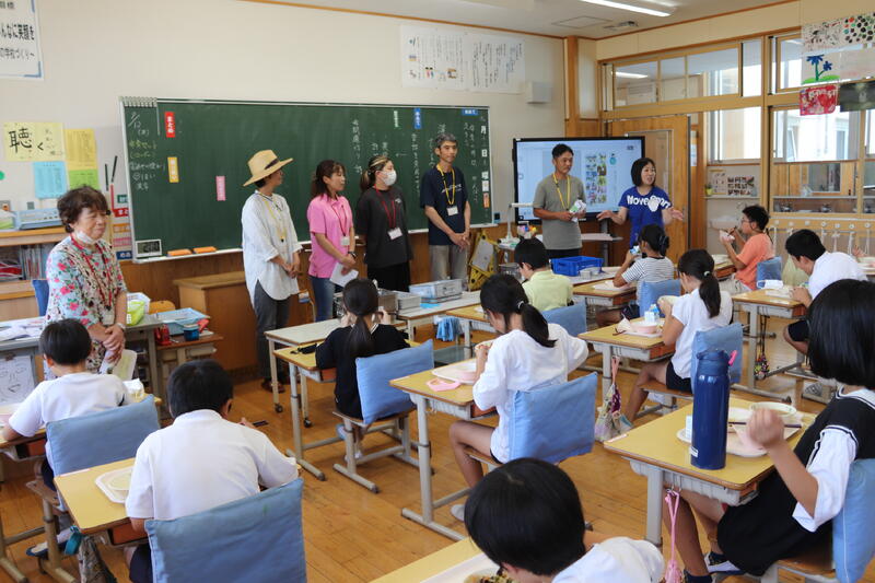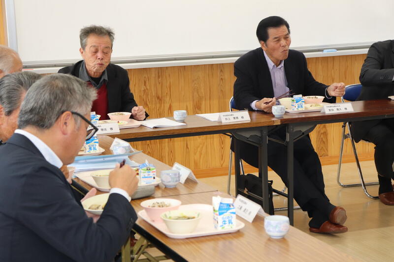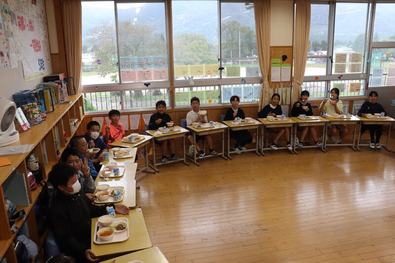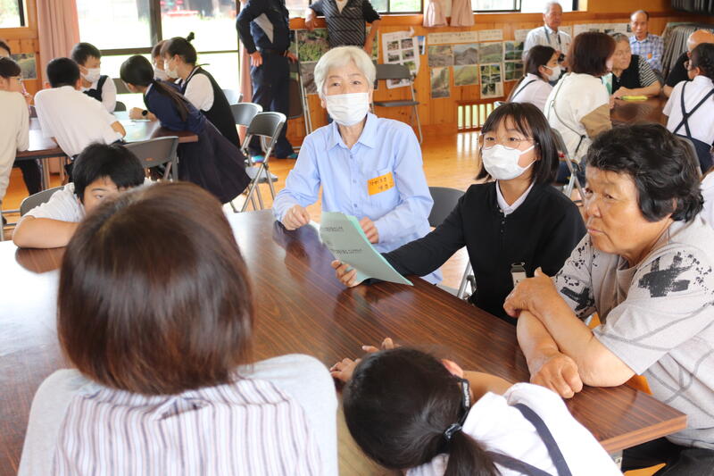 班ごとに分かれて座り、「好きだった給食は?」「好きだった学校行事は?」等、お題を決めたグループトークに花が咲きました。