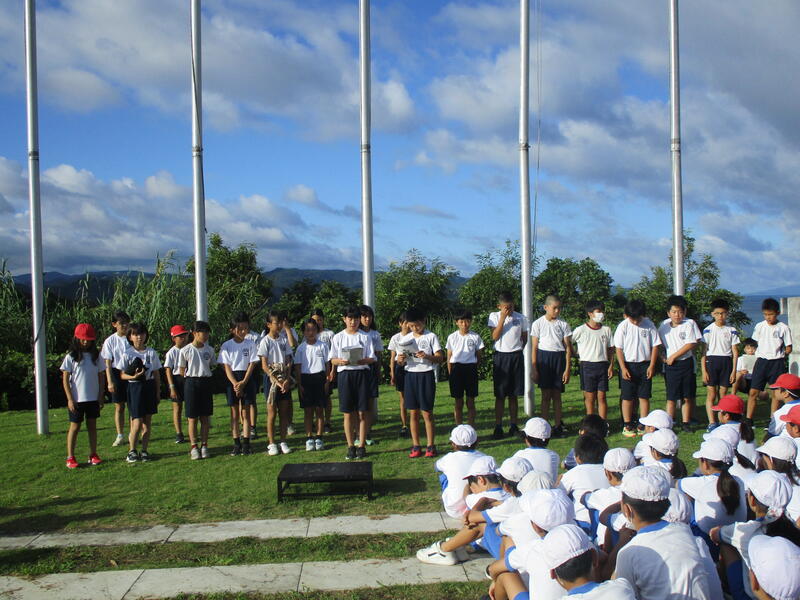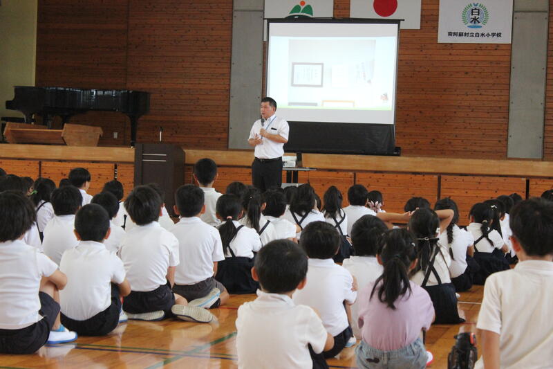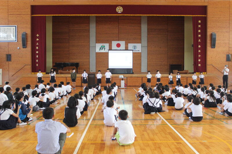 令和6年度は、新しくお二人の先生方をお迎えしました。就任式では児童代表が歓迎の言葉を発表しました。その後行われた始業式では、校長先生から「今年、白水小でがんばっていきたいこと」としてお話がありました。本年度は152名でスタートします。