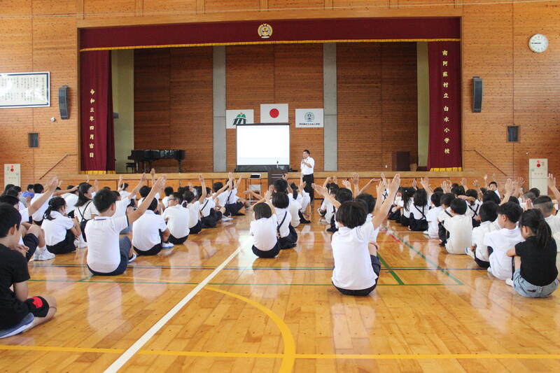 今年1年、白水小のリーダーとしてがんばってくれた6年生と楽しいひとときでした。6年生からのバトンを受け継ぎ、在校生みんなで白水小の伝統を受け継いでいきます。