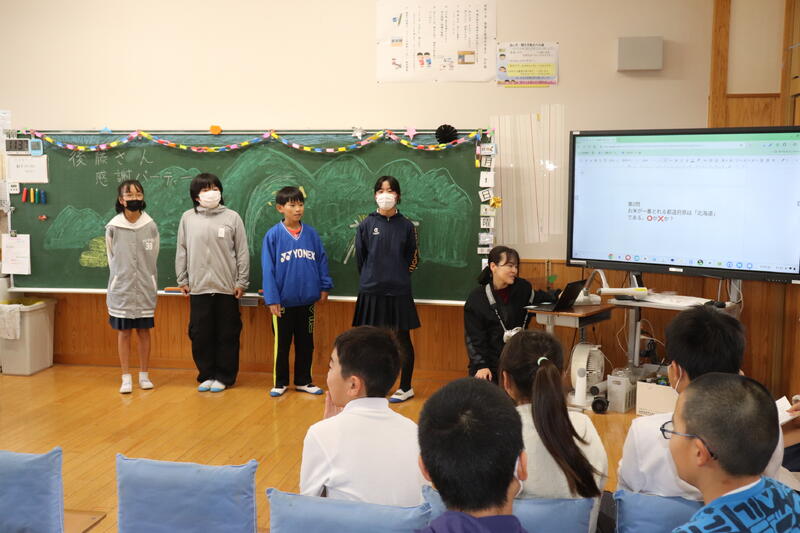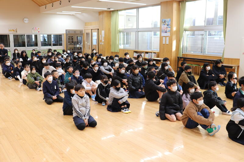 6年生に対し感謝の気持ちを伝えようと、3,4時間目を使って「6年生を送る会」が開かれました。各学年からのメッセージと自作の贈り物、6年生からのお返しの出し物、卒業記念制作の贈呈、全校○×クイズなど、6年生と一緒に楽しい時間を過ごしました。