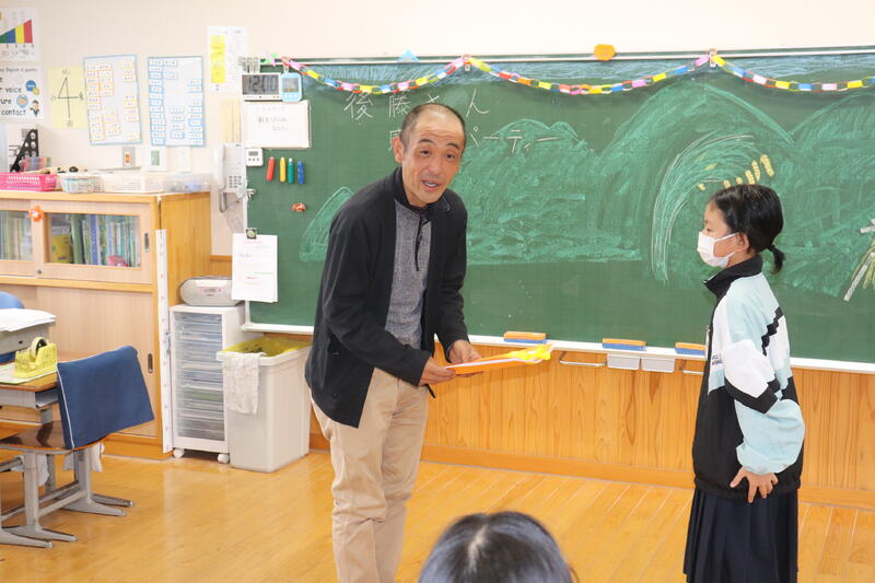 6年生が卒業を前に、先生とのお別れの会を企画してくれました。職員室に先生方を招待する使者が現れ、多目的ホールまでの道のりをアーチで出迎えてもらいました。