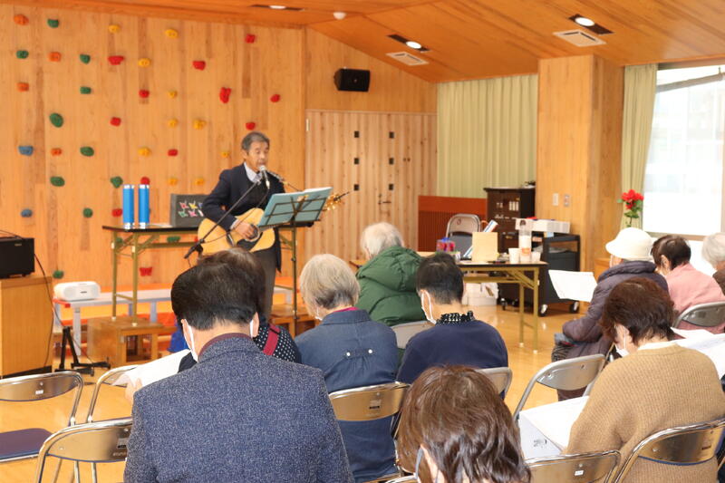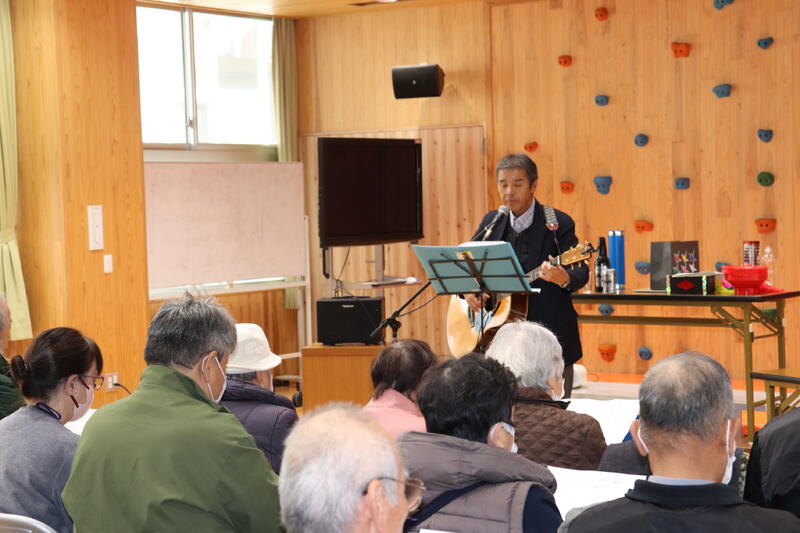 講師は、旧長陽村在住の方で、ご自身が中学生の時、修学旅行で長﨑に行かれ、そのとき病気だった永井隆博士が元気になるように、自分たちで掘った「自然薯」をお見舞いとして贈られた思い出を話されました。博士からは、お返しとしてお手紙をいただき、その手紙は今でも南阿蘇中に飾られています。そのときの博士との交流の中で、博士からもらったコスモスの種を持ち帰り、自分たちの中学校に植えたそうです。