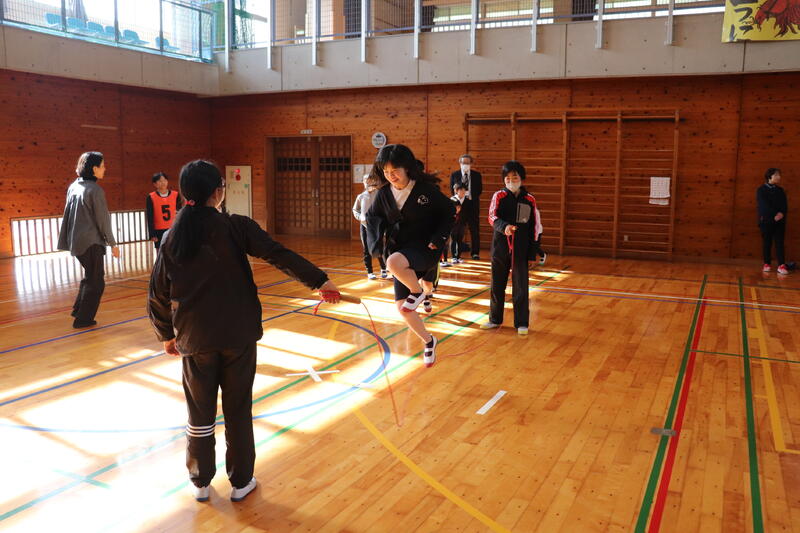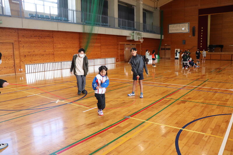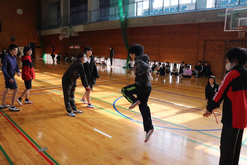 大村さんに来ていただいて一緒に体つくりの運動を楽しむのは、今年度は今日が最後になりました。2年生と一緒に、本当に楽しく体を動かし、心も体もスッキリとしました。