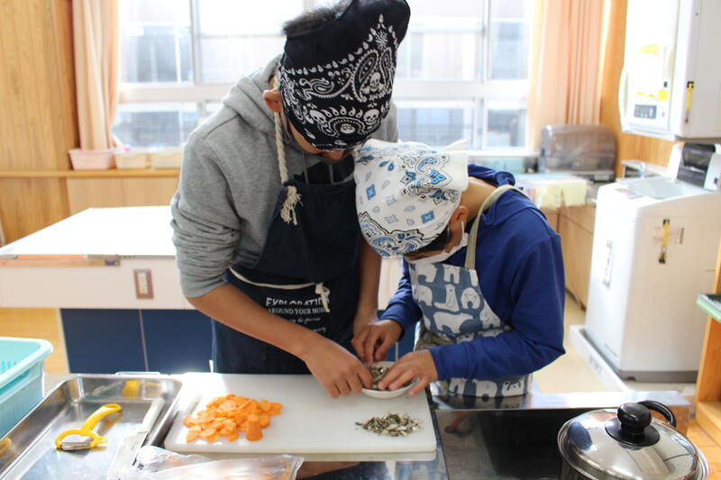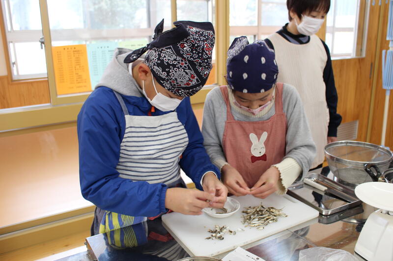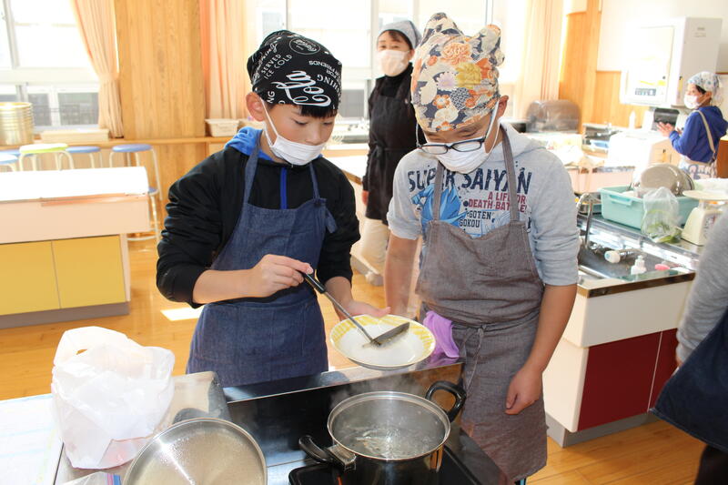 なんとか収穫量を確保し、その日は家庭科室で婦人会の方の指導のもと、塩漬けまでしました。