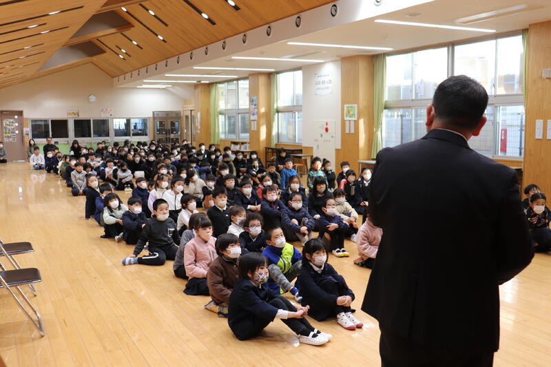 6年生が卒業し、少し寂しく感じる体育館。1年生から5年生までの修了式がありました。