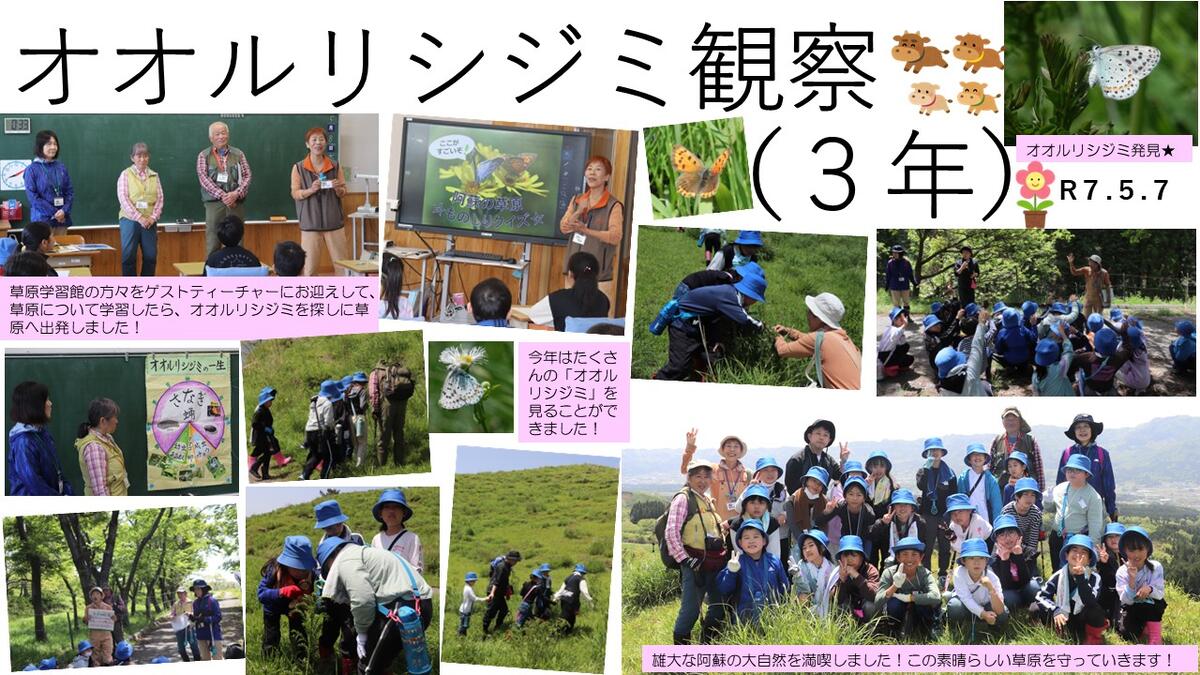今年も3年生が草原学習の一環として「オオルリシジミ観察」に行きました。絶滅危惧種のオオルリシジミ。今年も見られるといいですね。