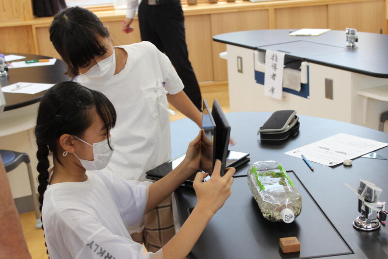 小桐先生の理科は、5年2組で「メダカのたんじょう」を行いました。写真にもあるように、タブレットを使っての観察を行い、オスとメスの違いについて考えました。タブレットの動画機能を使うとしっかり観察ができるので、とてもいい活用ですね。子どもたちも自分たちでタブレットを使ってしっかり観察していました。