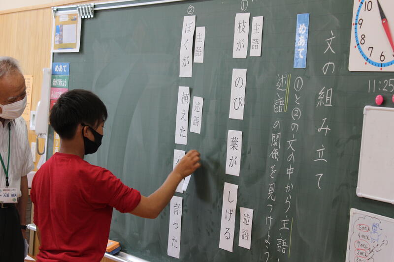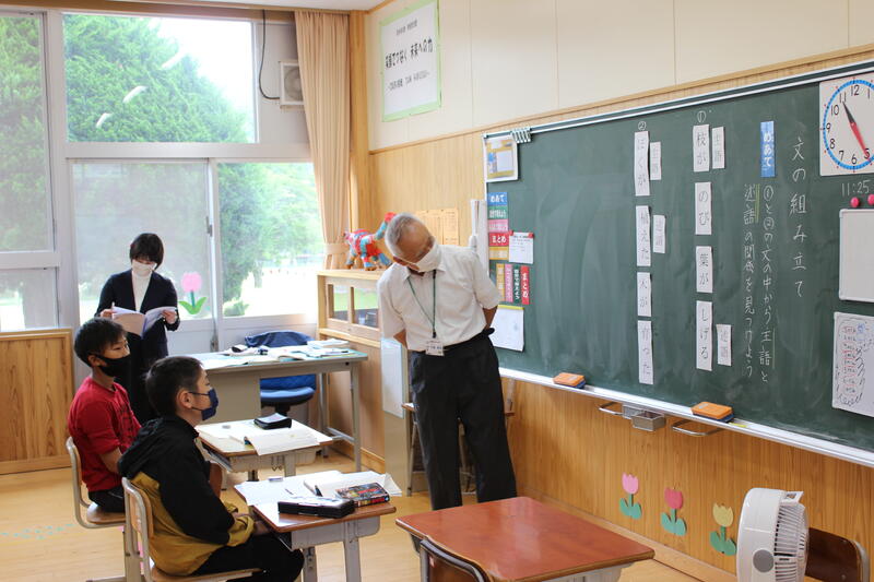 コスモス3組は大嶌先生の国語でした。どのようにすれば、主語・述語の関係を見つけることができるかの学習です。例文を用意し、一つ一つ丁寧に押さえながら、主語・述語の関係の見つけ方を考えることができました。