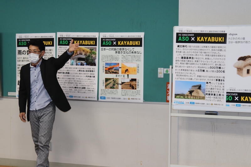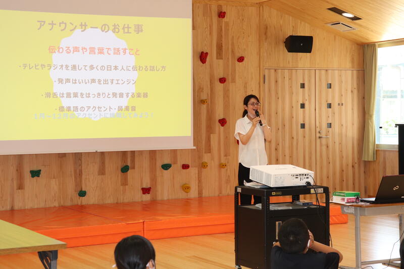 元NHKアナウンサーで現在、阿蘇市でもアナウンスのお仕事をされている古川さんに話し方や人に伝わる放送の仕方などを伺いました。5・6年生対象で講話をしていただきましたが、実演を入れながらの講話でした。子どもたちも上手いもので、わずか数分間の指導で、放送の仕方が大きく変わりました。さすが、本物は違いますね。次の日の給食時間の放送も何となく変わったような気がします。でもその翌日には元に戻っていたような・・・。やはり意識することが大切ですね。意識することを繰り返すとそれが身に付く第一歩です。そして、この経験をしたことは、さらに、はじめの一歩です。