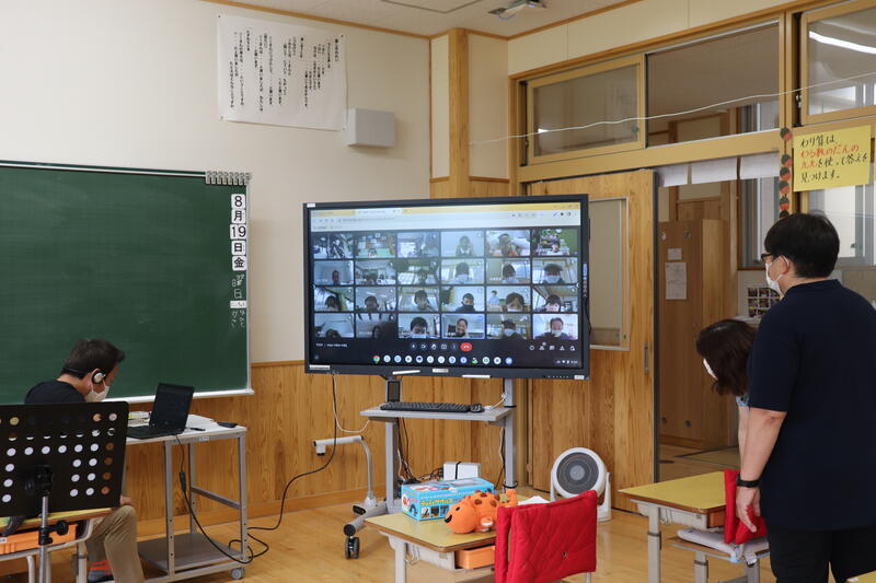 低学年から始まり、中学年、高学年の順番で行いました。私は中学年のリモートにゲスト出演を依頼されていたので、中学年に参加しました。津田先生、荒川先生、小井手先生方が準備されていた「夏休みクイズ」をしながら、リモート登校日を楽しんで?いました。夏休みのこと、先生方のことなどをクイズ形式で出し、子どもたちも楽しんでくれたようです。熱が入りすぎて、時間をかなりオーバーしていましたが・・・。