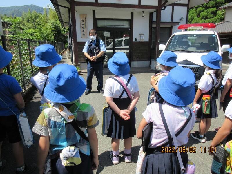2年生は1学期に色々なところに見学に行っています。虫さがしは紹介しましたが、今回は学校の周りの施設の見学について紹介します。郵便局、警察署、給食センター、白川水源です。子どもたちも行ったことがあると思いますが、改めて、働いてる方々から説明を聞き、発見があったようです。