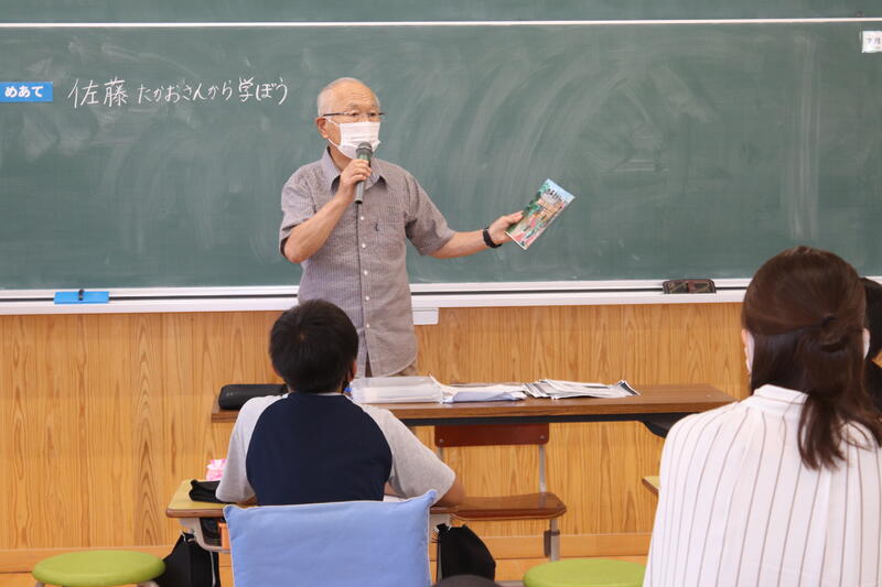 さらに、7月には佐藤多可雄さんに話を伺いました。その日は、授業参観ということもあり、保護者の方にも一緒に聞いていただいたところです。