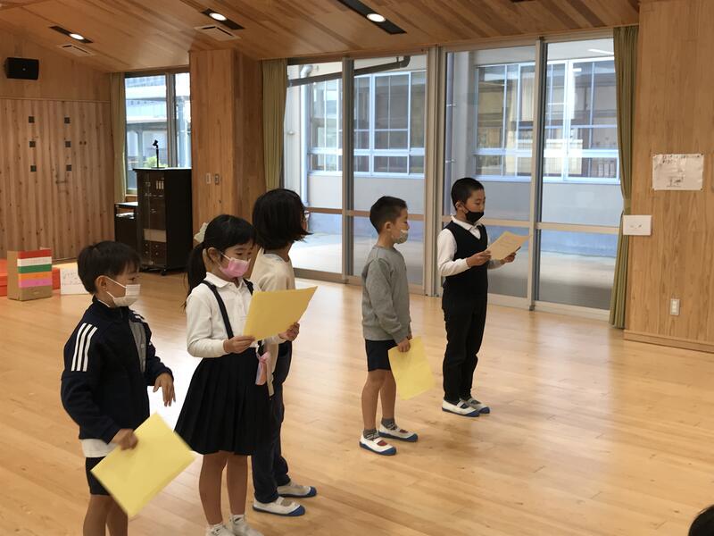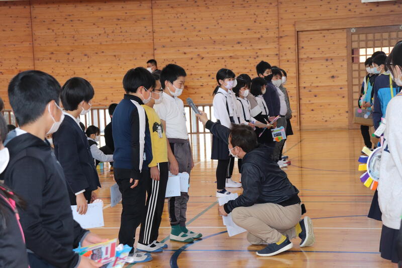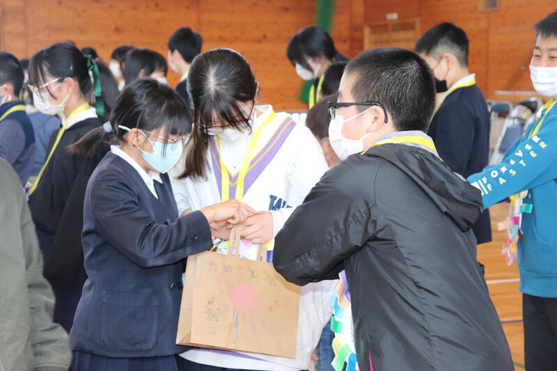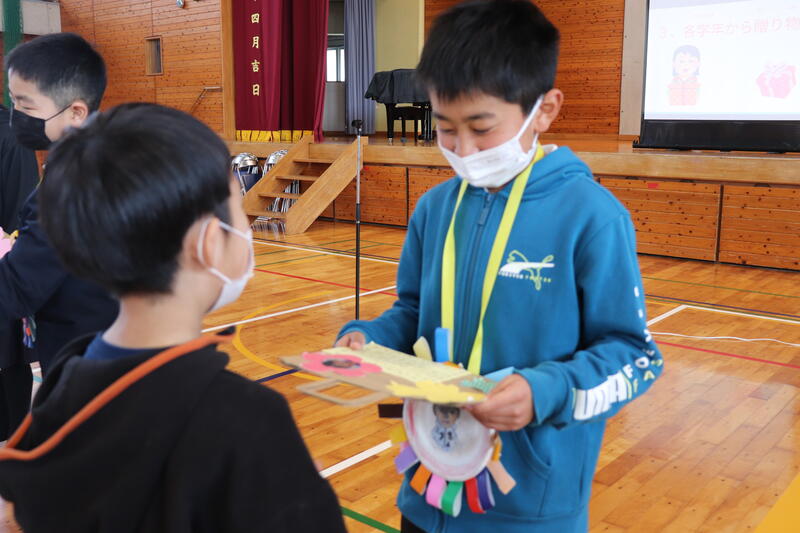 まずは、各学年の発表とプレゼント渡しです。各学年、心のこもったプレゼントでした。