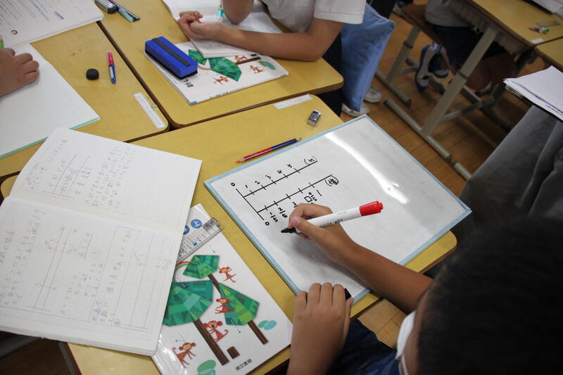 3年生は、津田先生の算数の授業です。内容は、「あまりのあるわり算」です。あまりがでるケーキを入れる箱の数をどうするのかという問題です。3年生オリジナルのスマイルパワータイムで話し合いを行い、子どもたちもしっかり説明していました。津田先生の子どもたちの学習意欲を喚起させる声かけとのびのびと学習している姿に成長を感じました。