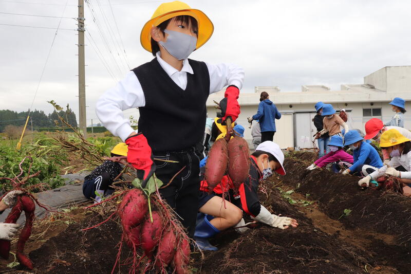 私が数年前に別の阿蘇の学校で人参を植えていたときに、人参の葉を初めて見たと子どもたちが話していました。お店に売っている人参は葉っぱがないからとも・・・。中には人参の葉も緑ですね。と言う子もいました。阿蘇の子どもたちでもそうなので、他の地域では、未だに知らない子もいるかもしれませんね。