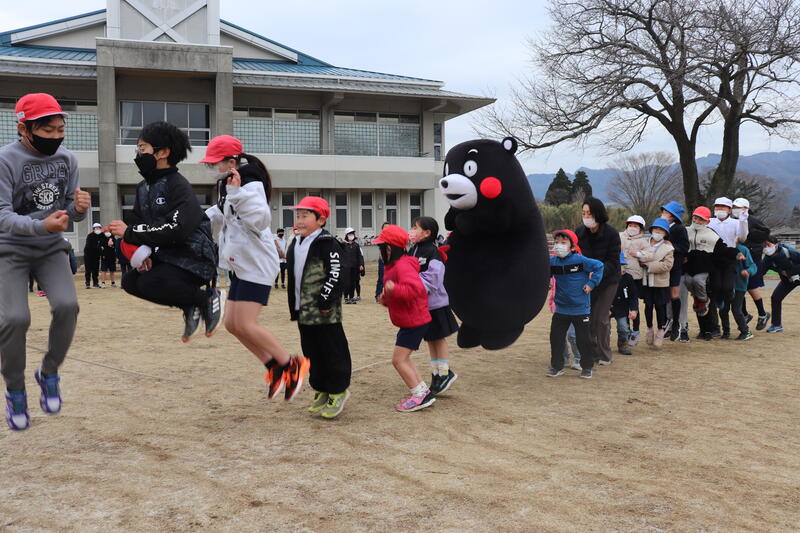 2月9日にくまモンがサプライズでやってきました。一緒に大縄をしたり、タイヤ跳びをしたり、6年生とかけっこをしたり、スポーツが大好きなくまモンでした。子どもたちは大興奮だったようで、当日、不在にしていた私はうらやましかったです。子どもたちの中には本気?のファンもいて、素敵なサプライズになったことでしょう。