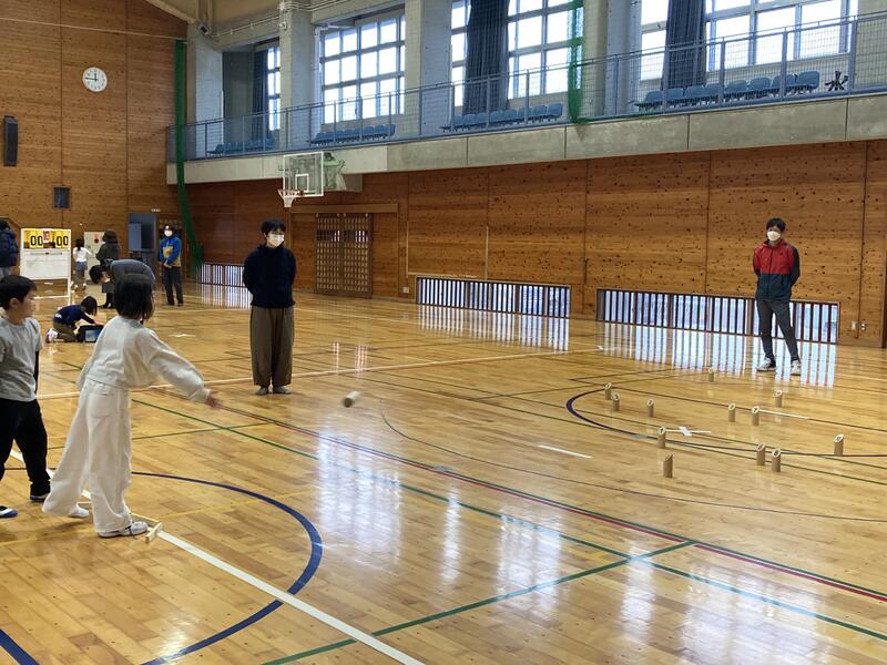 白水小体育館でモルックをしました。初めはルールを覚えることに集中していましたが、途中からはすごく盛り上がって