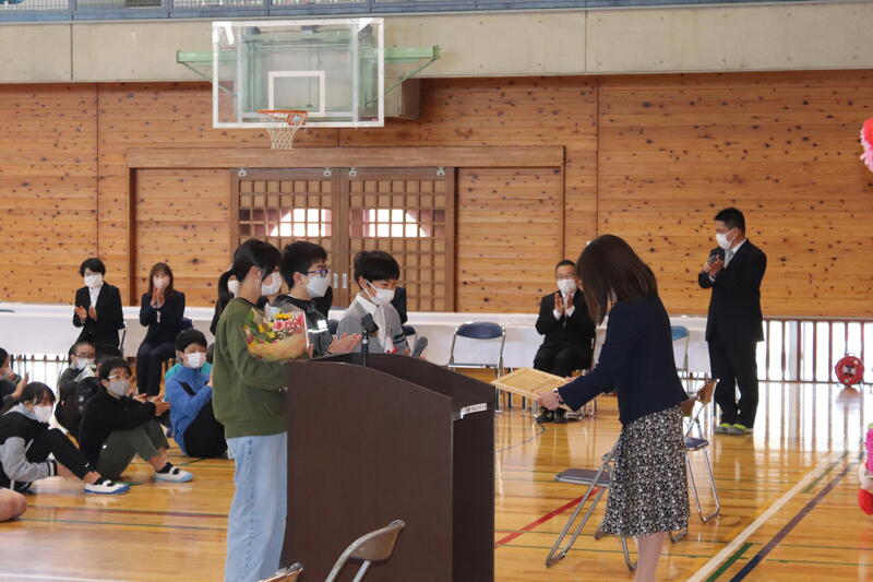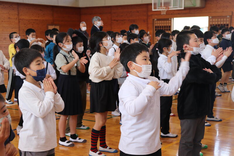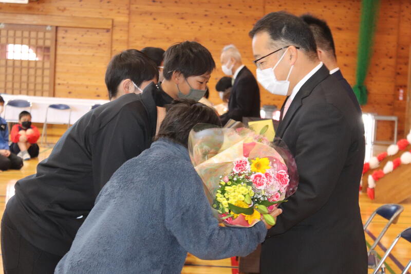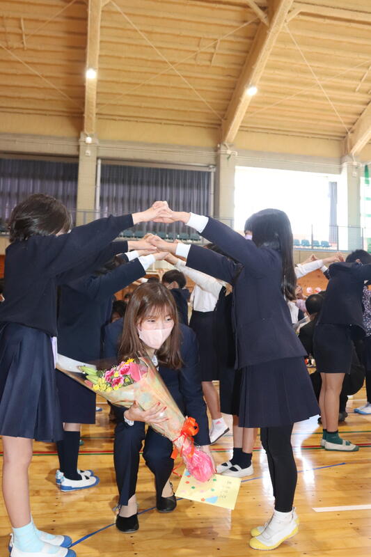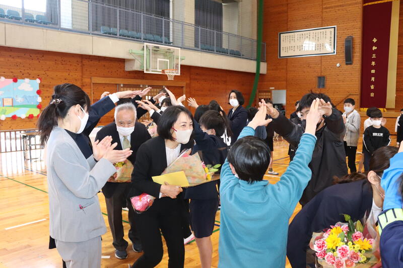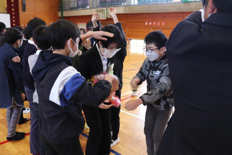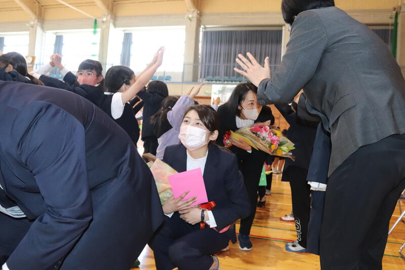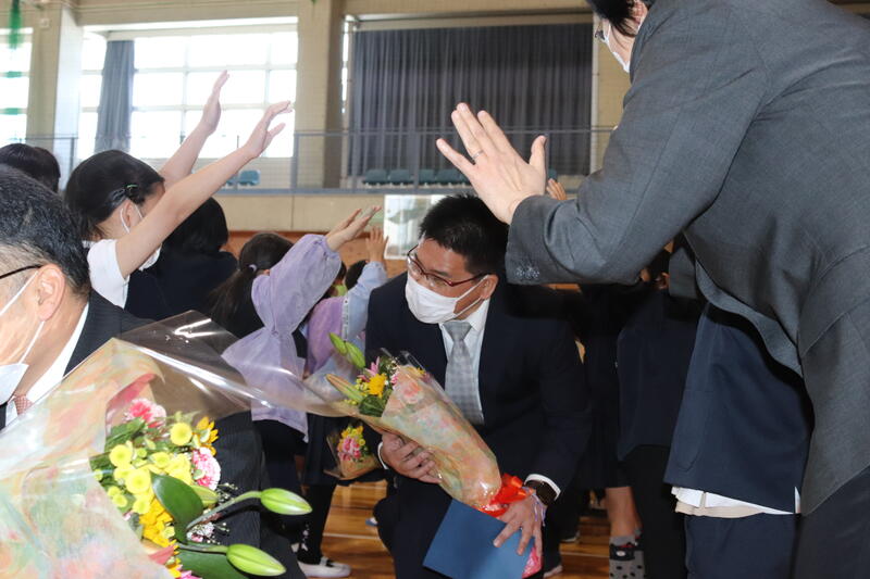 それぞれの思いや願いを子どもたちに話し、子どもたちからも温かい言葉をもらいました。最後は花道を作ってもらい退場しました。
