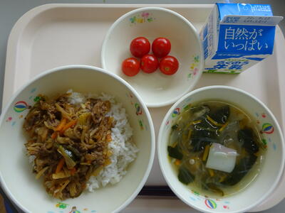 7月に入りましたので、夏を代表する『なす』を取り入れました。厚めの半月切りにしたなすが、とろっと溶けていて食べやすかったです。給食の時間、「家のマーボーなすより、なすが小さいから、食べやすそうです。」と話してくれました。