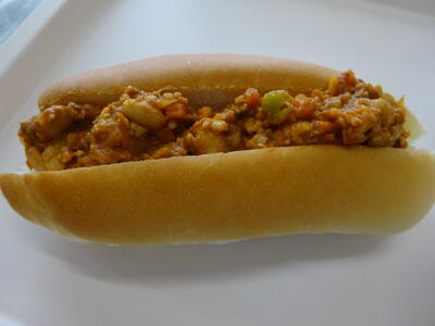 ミートスパゲティに、小さくカットしてあるひき割り大豆を入れました。ひき肉やみじん切りにした野菜と一緒に炒めているので、大豆が苦手な人も食べやすかったようです。ミートスパゲティが大好きな子どもたちが多く、『また、食べたいです!』と言う感想がたくさん書いてあり、嬉しかったです。