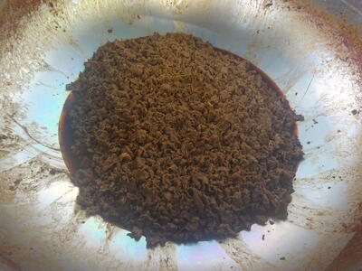 ドライカレーは、とても人気があります!材料は、『あか牛のひき肉、にんにく、しょうが、玉ねぎ、人参、セロリ、ピーマン、サラ玉ちゃんペースト、レンズ豆』です。調味料は、『2種類のカレー粉とカレールウ、ケチャップ、ソース、バター、濃口しょうゆ、赤ワイン、塩、黒こしょう、黒砂糖、米粉』でした。材料を順番に炒めていきました。給食センターの調理員さんが、丁寧に作ってくださるので、回を重ねる度にどんどんグレードアップしています。