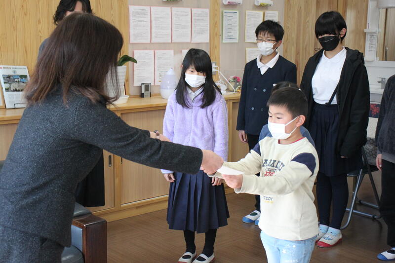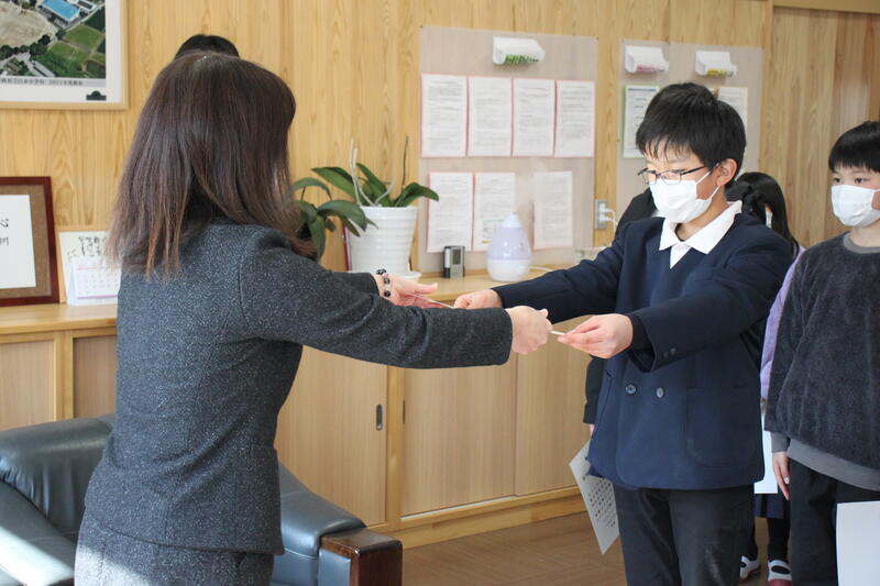 さて、嬉しい話です。毎朝、校門前で交通指導していただいている磯崎さんが、本校の4年生児童から優しい声かけをしてもらったと、大変、喜ばれていました。磯崎さんは、こんな優しい声かけをしてもらったのは初めてですとわざわざ学校にまで伝えにいらっしゃいました。